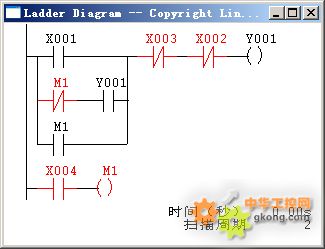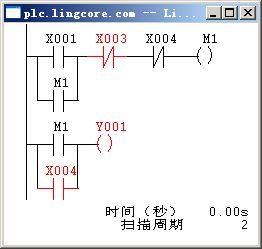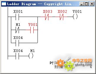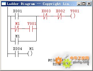 第三周期,X004放开,但由于上一次M1导通,所以Y001变为1,这表示用开关X004打开Y001的目的已经达到:
